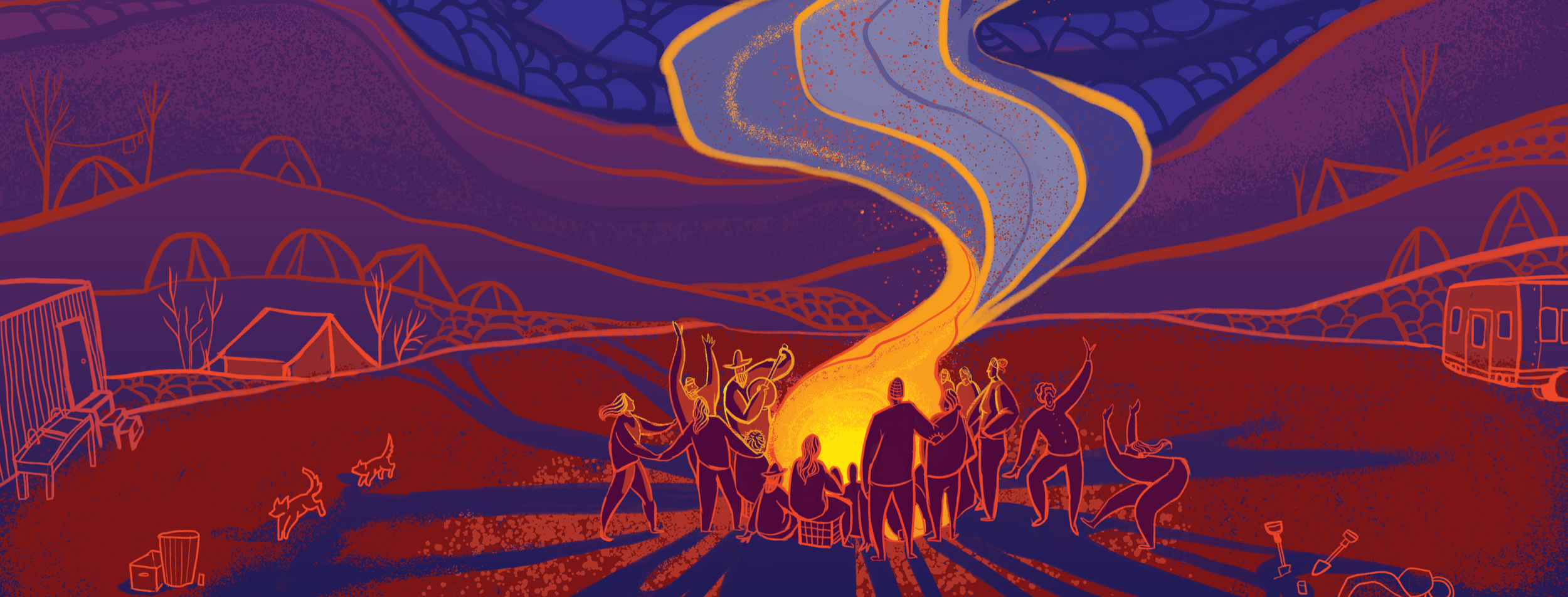 The High-Baller’s Ballad is a rhyming tall tale of a planting crew that stays too long in the bush. Nerves fray and competitive spirits get out of hand in the whimsically illustrated far-flung forests of this wild country.